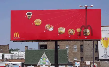 An example that straddles classic and modern classic (partly because I think it is a few years old) is the McDonald’s sundial poster (left)- a new kind of poster using an ancient form of time-telling. The best event -coming off a sign (poster?) saying ‘push button for action’ – goes to TNT TV because it was announcing a new station and therefore had a clear objective rather than just being a stunt. A consistently good use of posters now and in the past has to be Harvey Nichols in the UK for their sales ads from DDB.