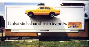 The father (or mother) of such posters was the Araldite 48 sheet on the Cromwell Road with the car stuck to it and the headline ‘We also stick handles to teapots.’ Has it been bettered?