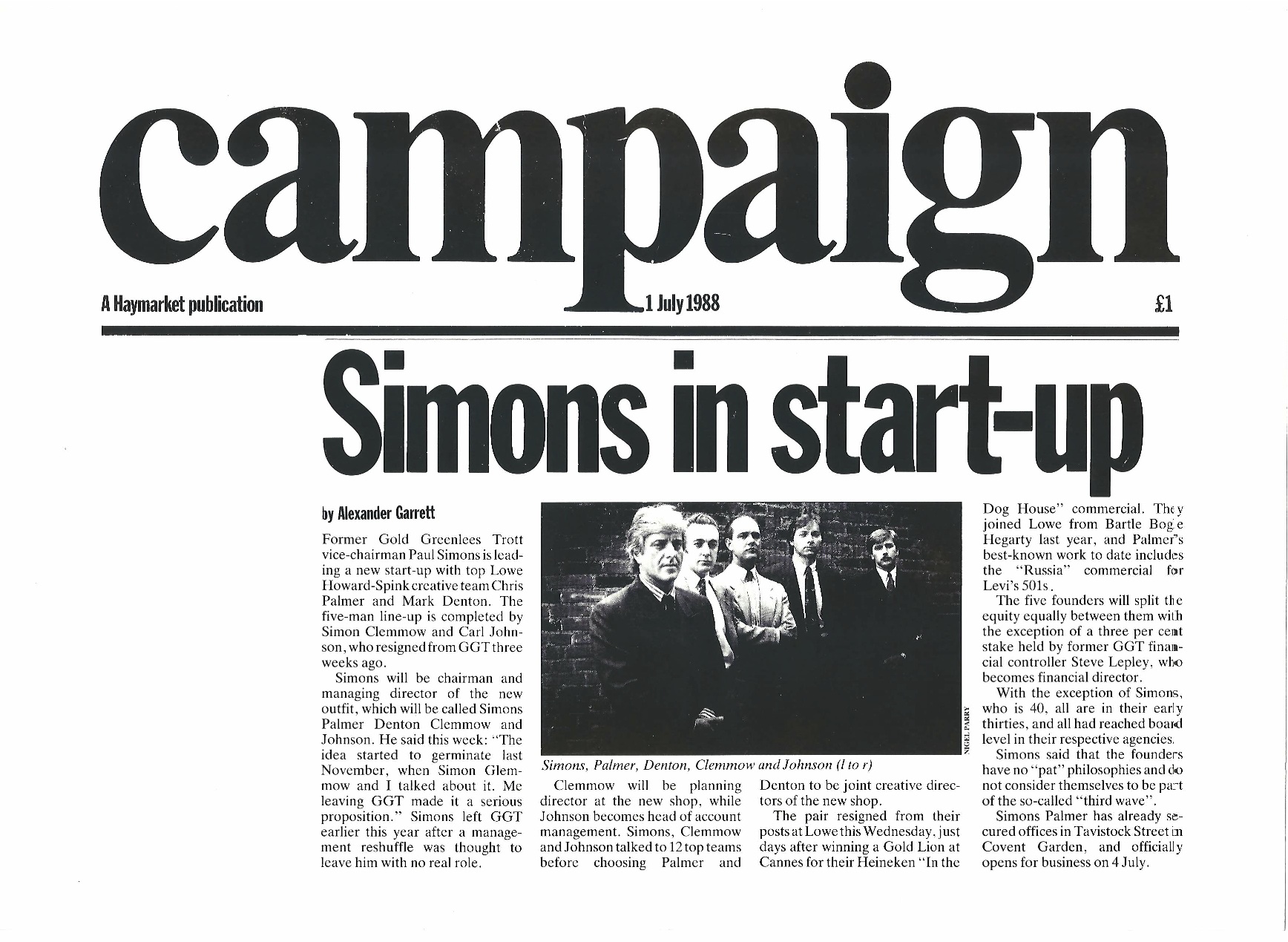 25 years ago today five of us announced the start of a new advertising agency with a front page splash in Campaign magazine. We all met up for lunch that day trying to figure what would happen next. We had no idea what lay ahead, failure or success.