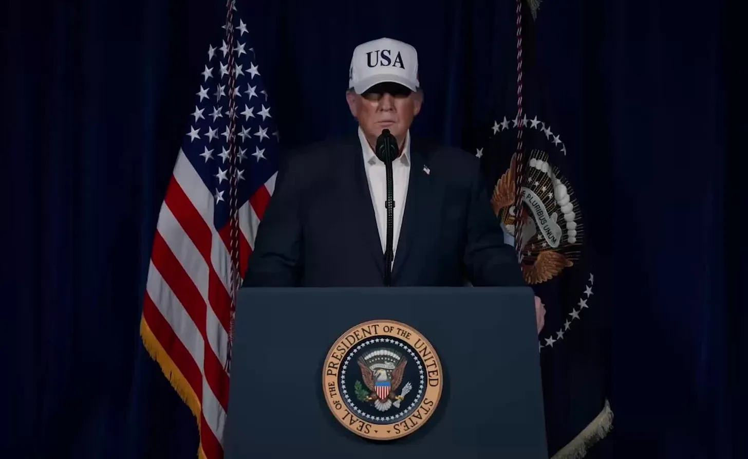 And that’s exactly how Trump announced it in the early hours of Saturday. Not from the Oval Office — not with the gravity that the assassination of a head of state demands — but on, er, Truth Social. A poorly lit video, shot in a baseball cap, flung out on his personal blog like he was hawking Trump Steaks again. He couldn’t even be bothered to put on a tie or put his ridiculous combover through the usual two cans of hair spray.